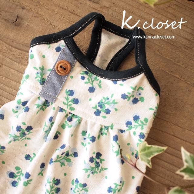 やわらかなニット地に鮮やかなブルーとグリーンの小花柄。