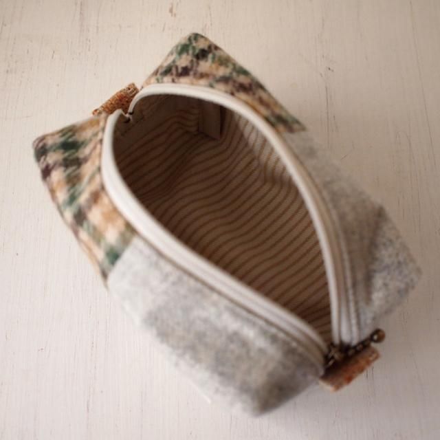 No.179 ツイード・ポーチ(グレーベージュ系)